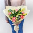 Букет из кустовых роз и диантуса