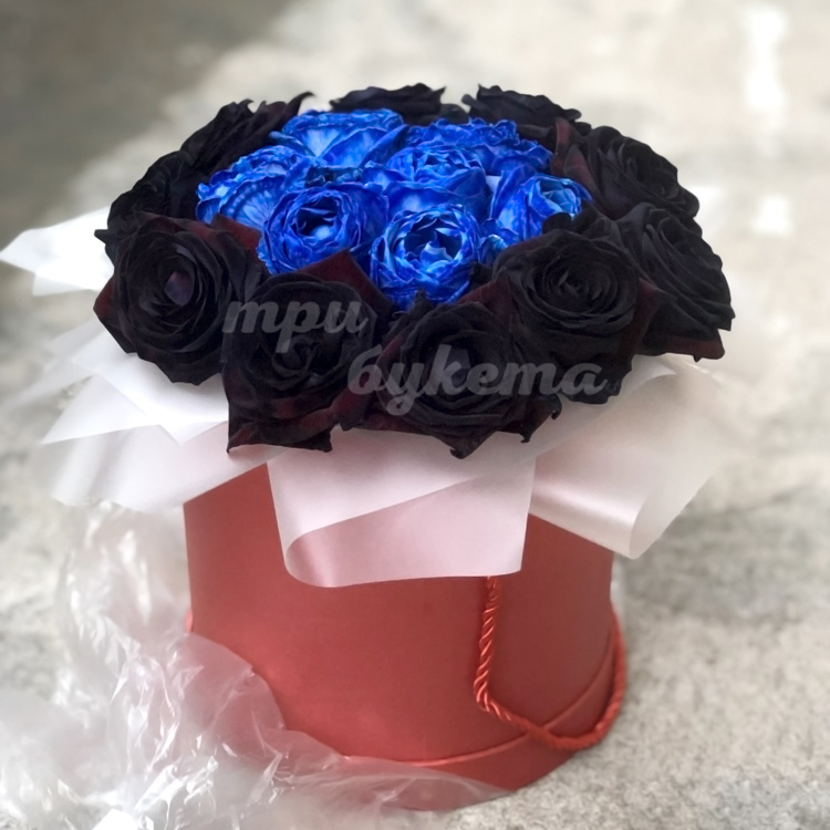 10 Черных и 7 синих роз в коробке