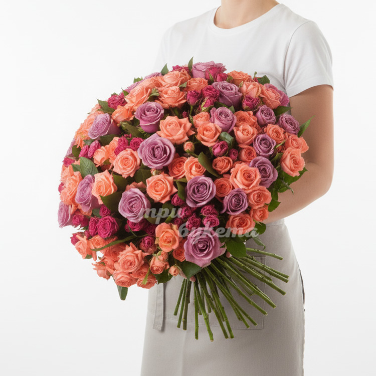 - Разноцветные и кустовые розы (Эквадор), 101 шт.