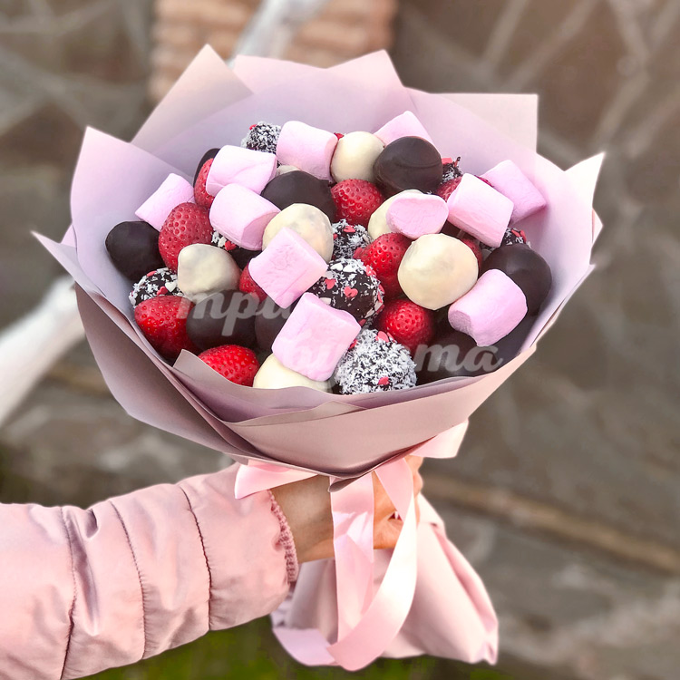 Букет 35 ягод клубники и маршмеллоу