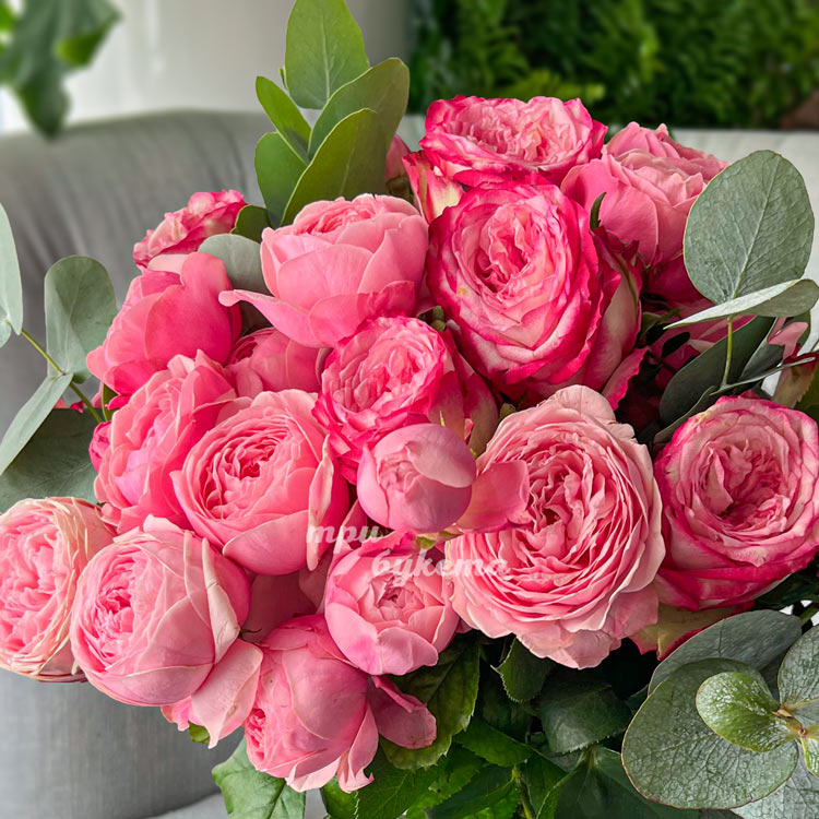 Букет 9 розовых пионовидных роз Сильва