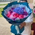 Букет из 5 пионов и амбреллы