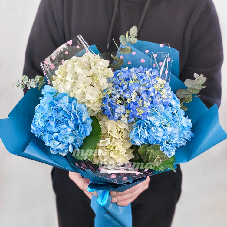 Букет из белых и голубых гортензий