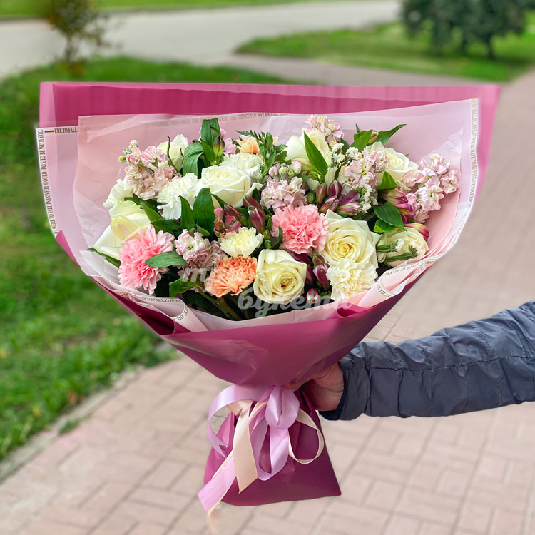Букет из роз и альстромерий