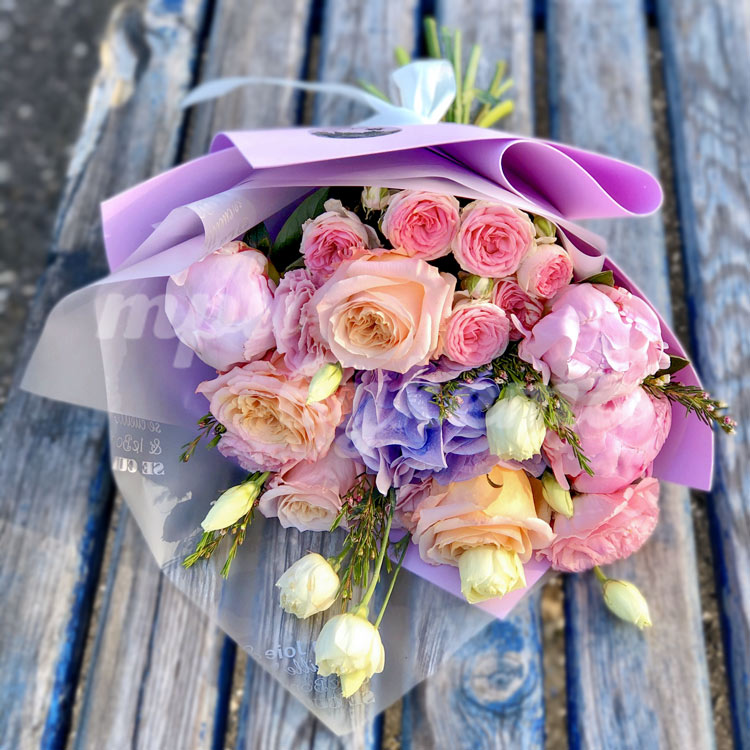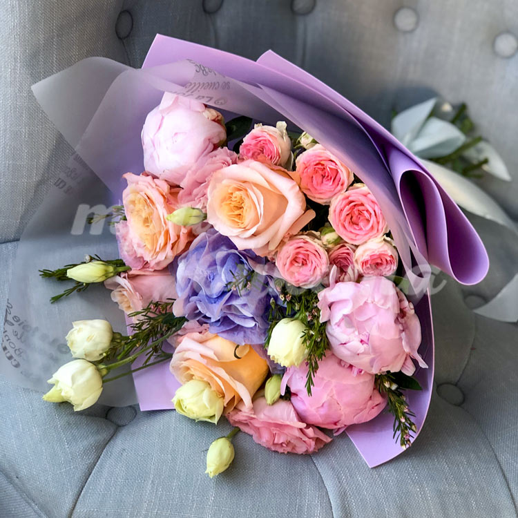 Букет из роз и пионов