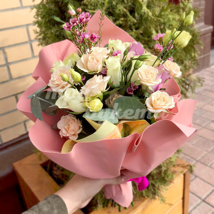 Букет из роз с эустомой