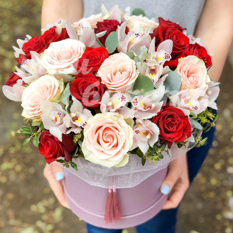 Букет в шляпной коробке «Эмма»