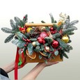 Елочные украшения и свеча в корзине