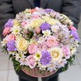 Голубые и розовые гипсофилы в корзине