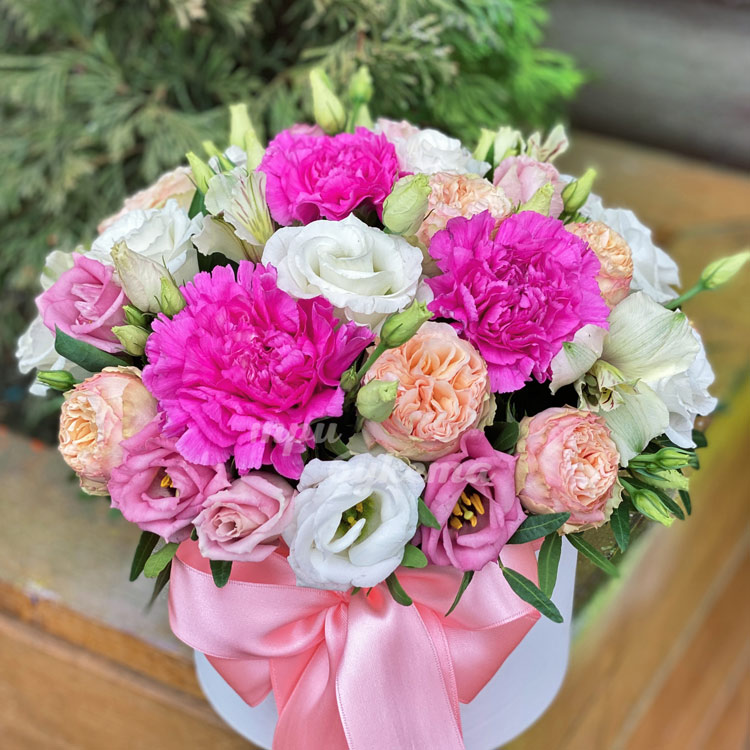 Гвоздики и розы в коробке