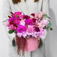 Гвоздики, розы и гортензии в коробке