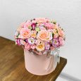Коробка кремовых роз и бордовых орхидей