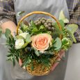 Корзина белых гортензий, гвоздик и роз