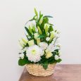 Корзина белых лилий и красных роз