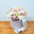 Нежно-розовые розы и эустомы в коробке