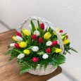 Пышная корзина с тюльпанами и сиренью